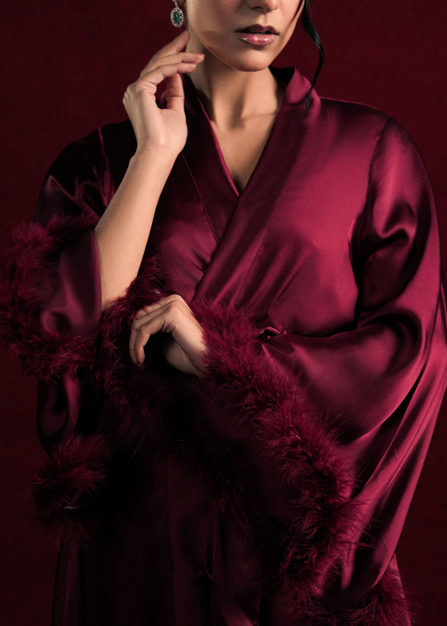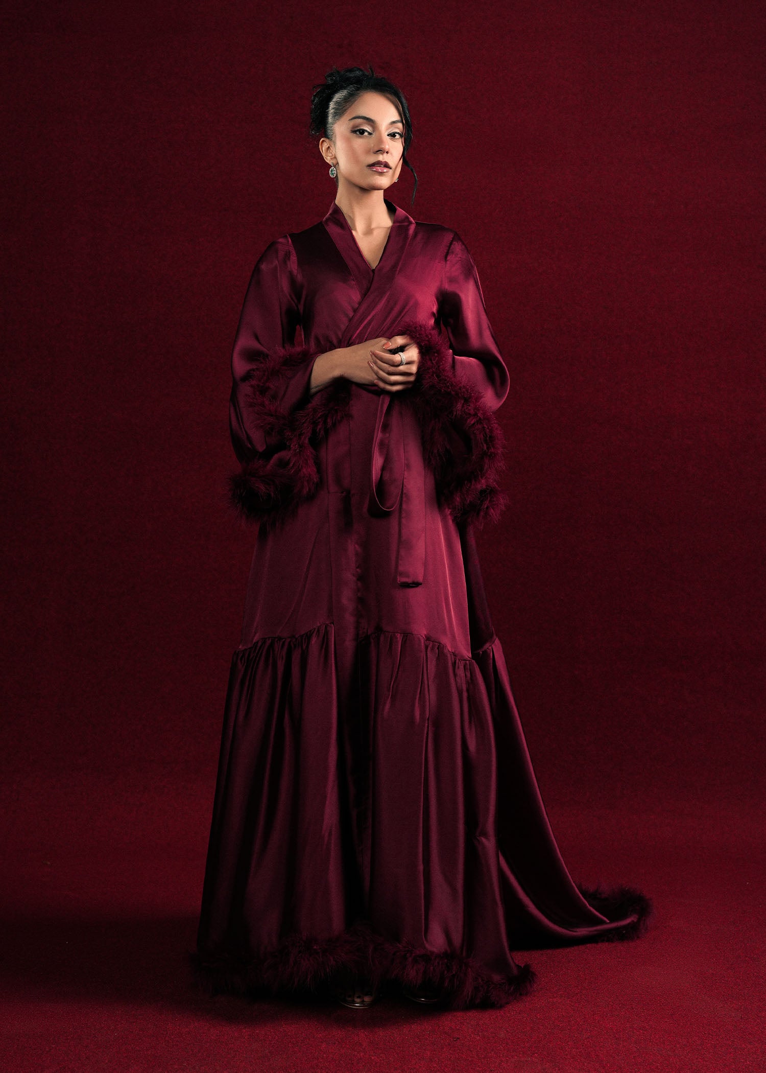 Burgundy silk night gown is crafted for evenings that call for effortless luxury.