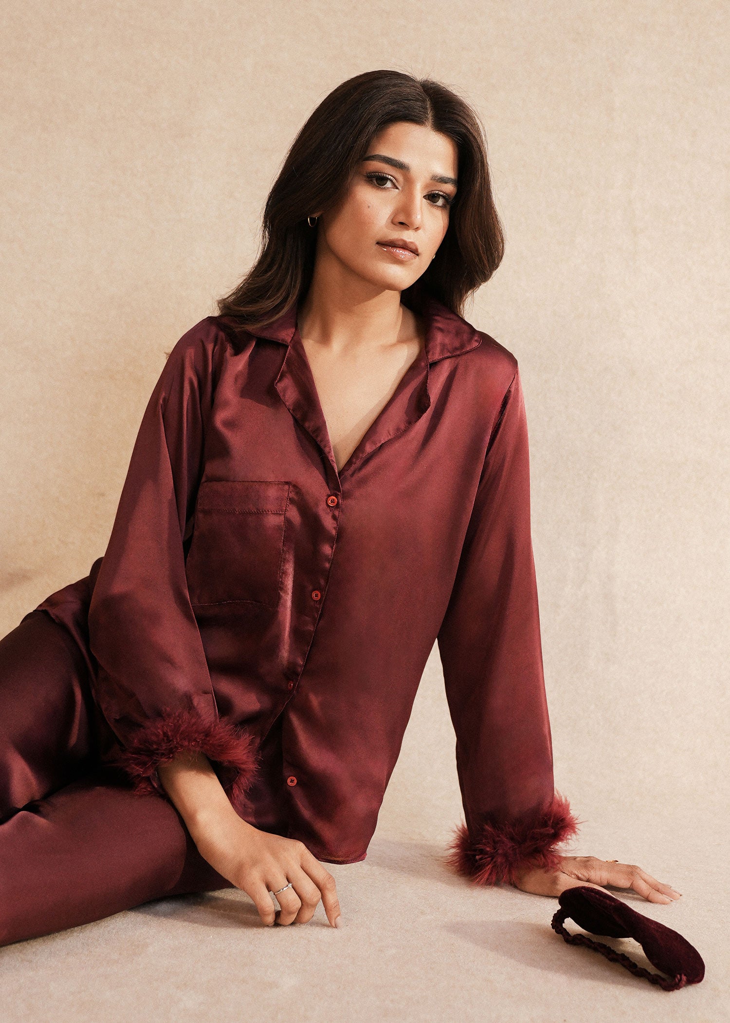 Experience ultimate comfort with the Mocha PJ set, crafted from silky soft fabric and adorned with luxurious fur lace trim around the cuffs. This set combines warmth and elegance, making it the perfect choice for cozy nights and stylish relaxation.