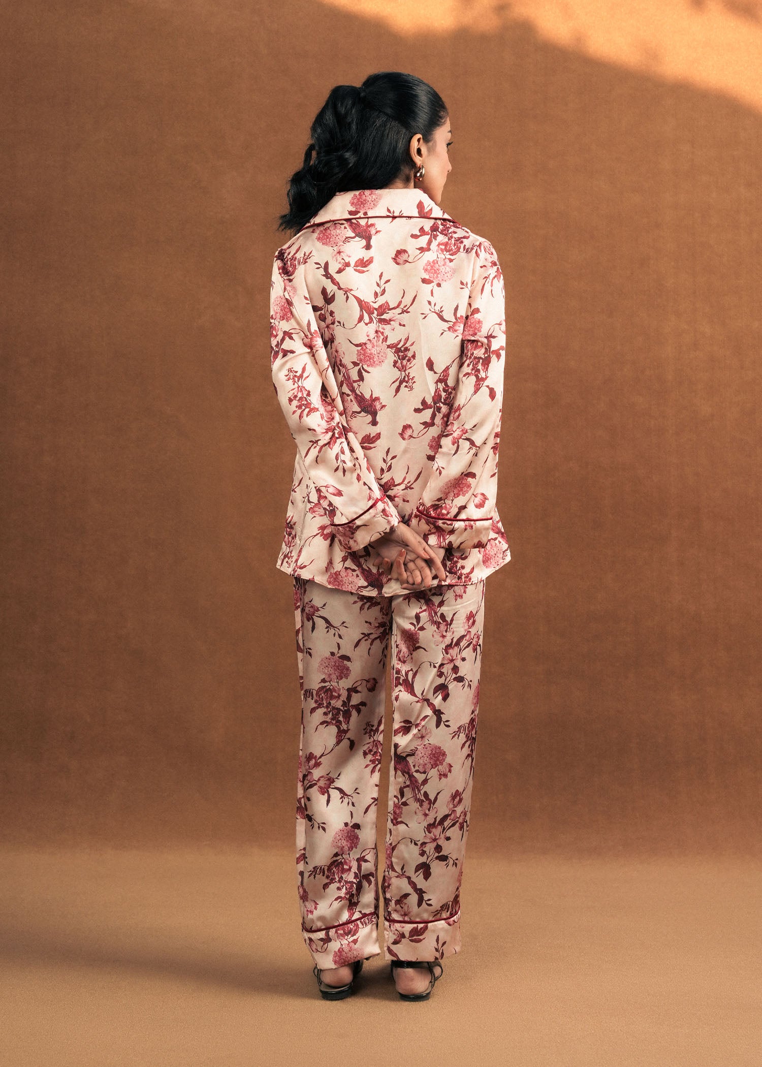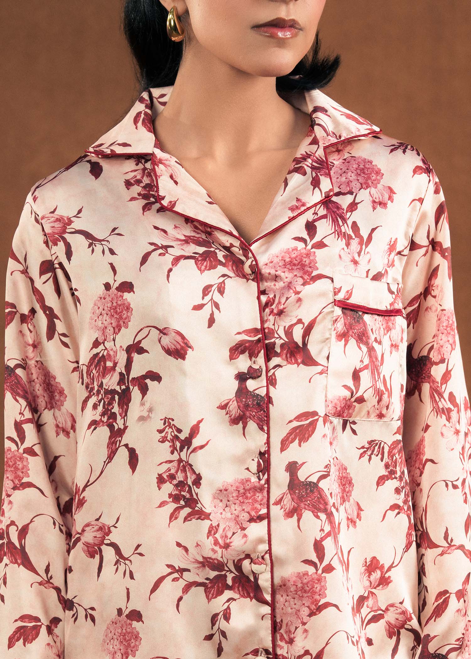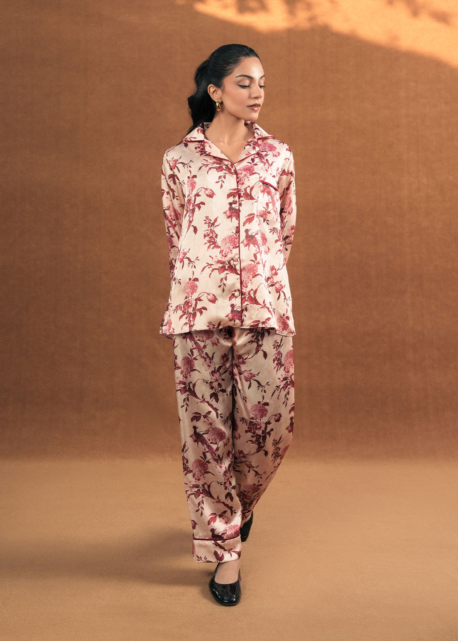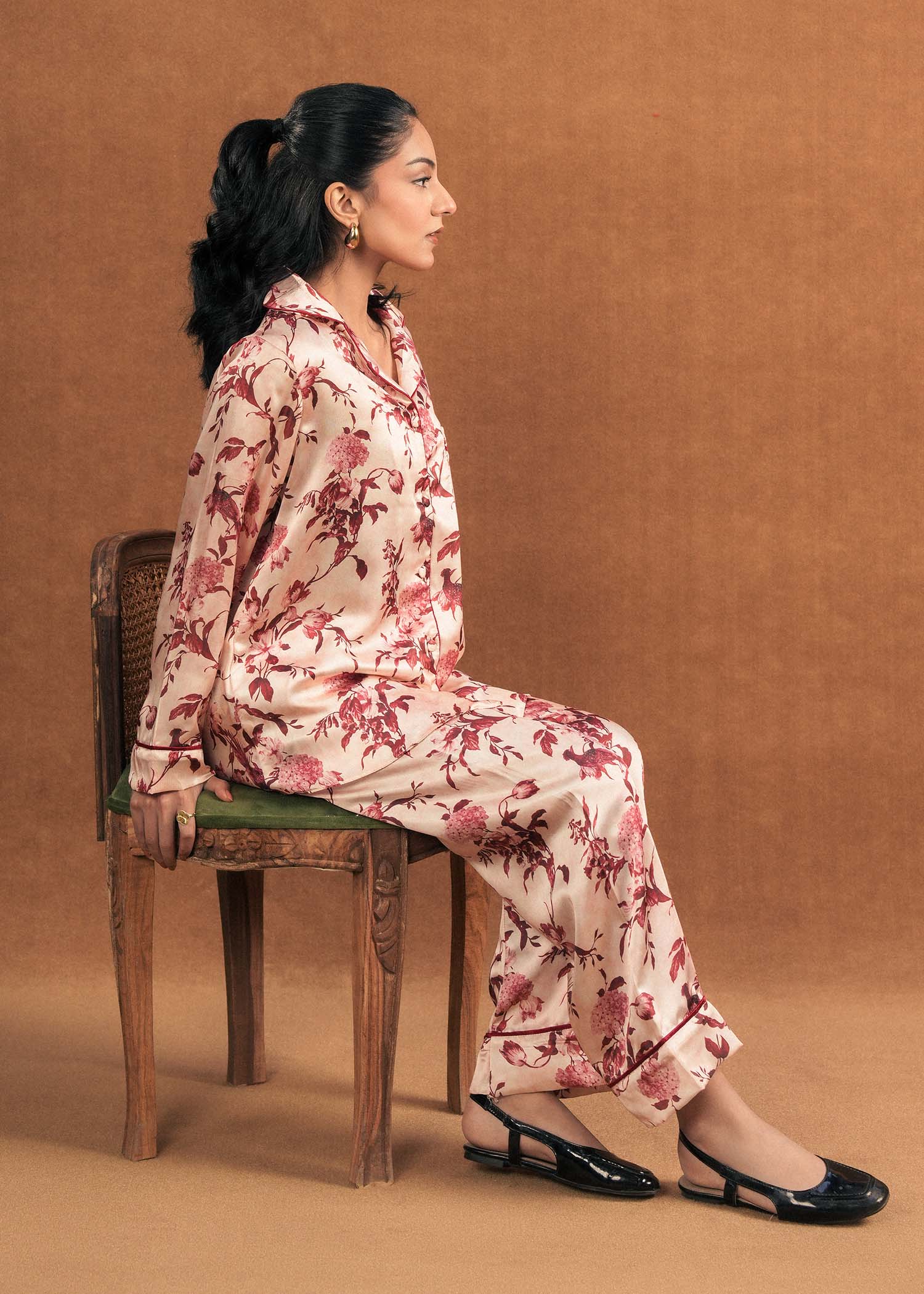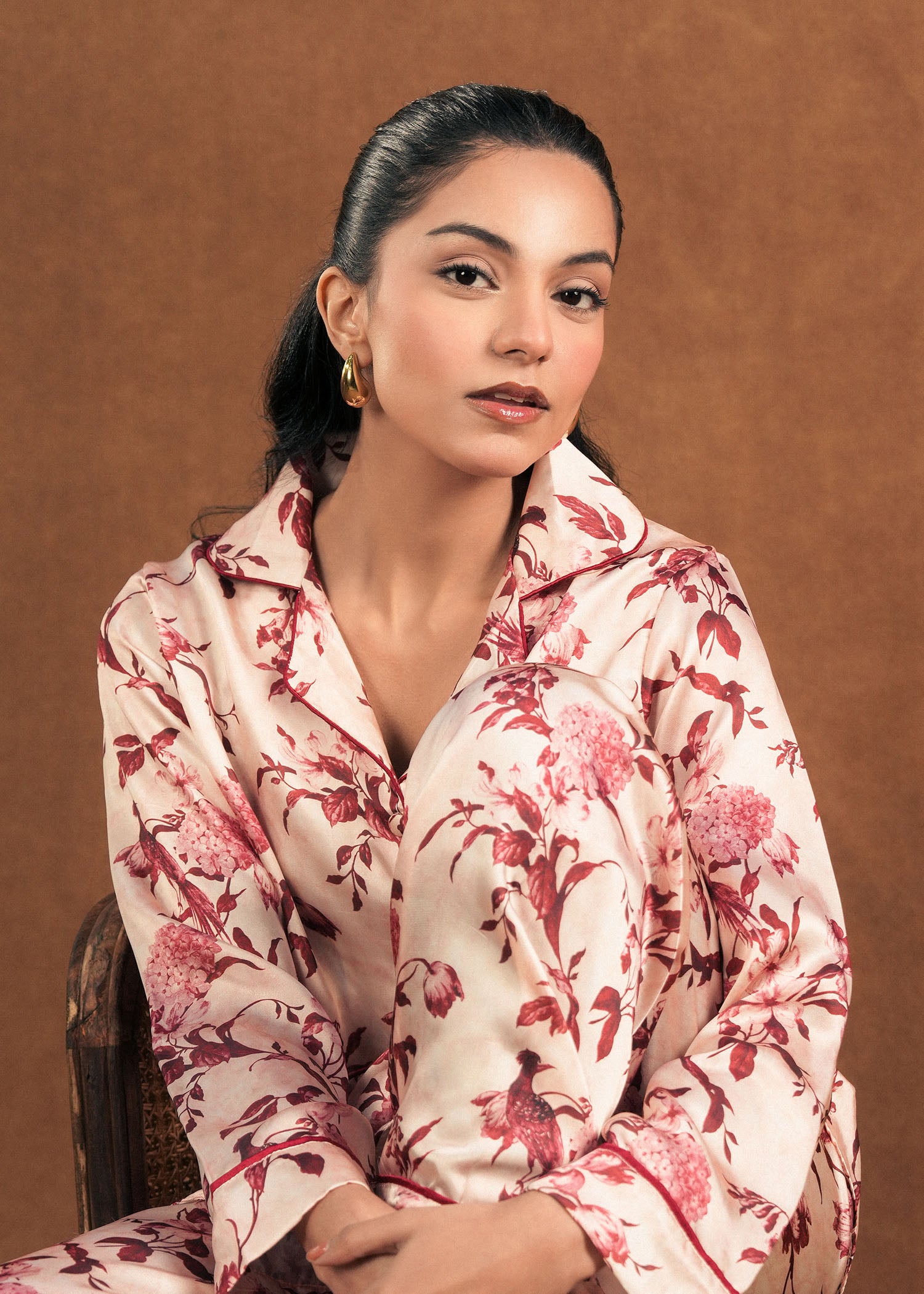 Luxurious comfort with Larosa’s silk nightwear PJ set. Crafted from soft, flowing silk in a delicate pink hue, this set ensures a perfect night’s sleep while keeping you effortlessly elegant. With a beautiful, eye-catching print