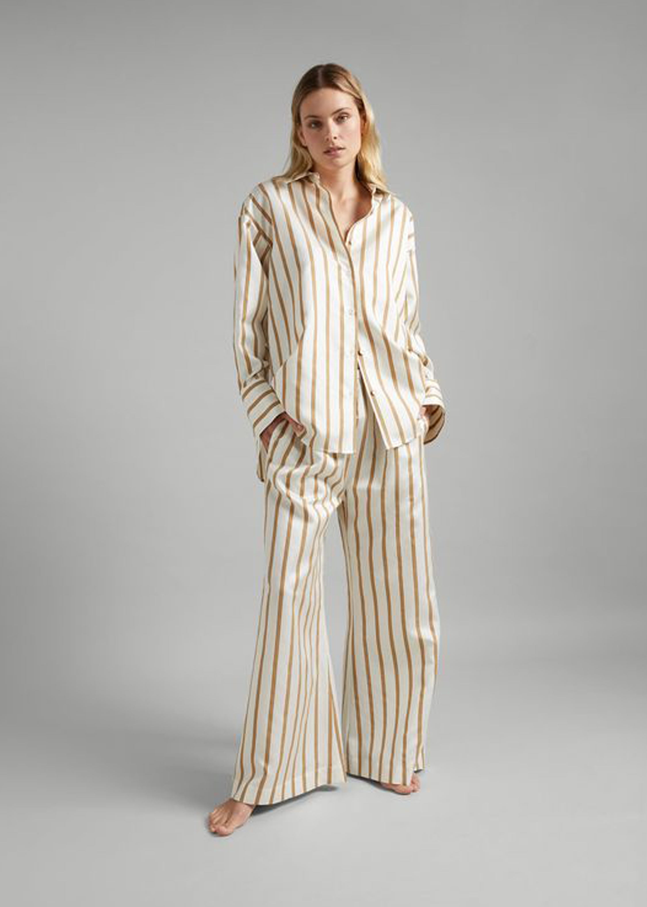 Our Beautiful Stripe Printed Silk Nightwear. Crafted from high-quality silk, this nightwear features an elegant stripe pattern that exudes sophistication. The soft, breathable fabric ensures a restful night's sleep, while the premium quality promises durability and lasting comfort.